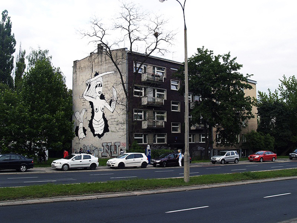 Fuzi, paryski grafficiarz i tatuator, ukończył na jednym z waszawskich bloków, monochromatyczną pracę przedstawiającą symbol stolicy.